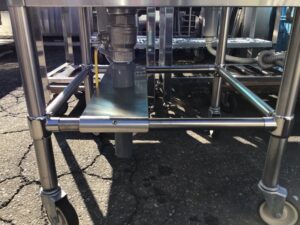 キャスターで移動できるステンレスシンクが入荷しています。排水には止水コックが付いています。